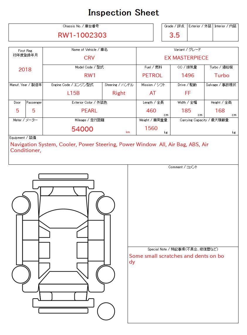 | CHASSIS NO. | RW1-1002303 |