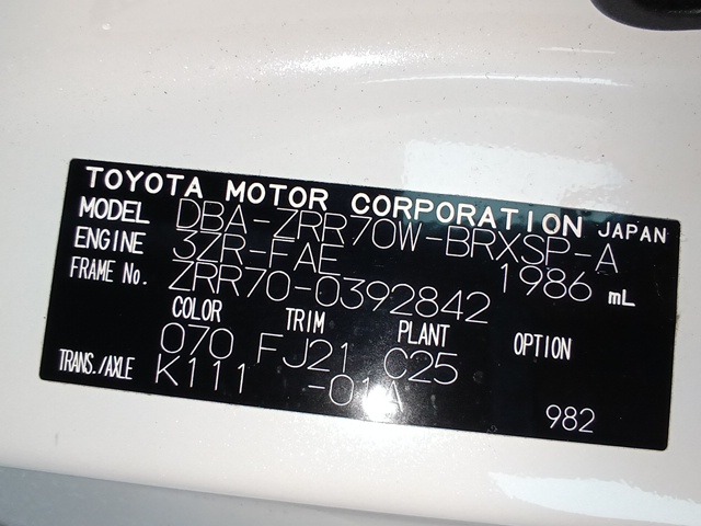| CHASSIS NO. | ZRR70-0392842 |
