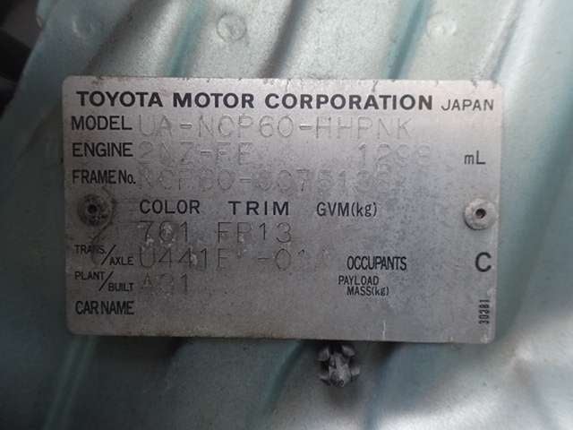 CHASSIS NO. | NCP60-0075138 |