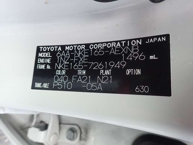 CHASSIS NO. | NKE165-7261949 |