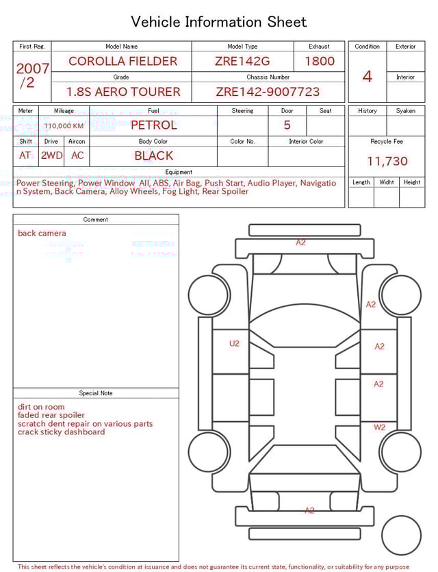| CHASSIS NO. | ZRE142-9007723 |