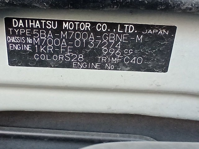 | CHASSIS NO. | M700A-0137274 |