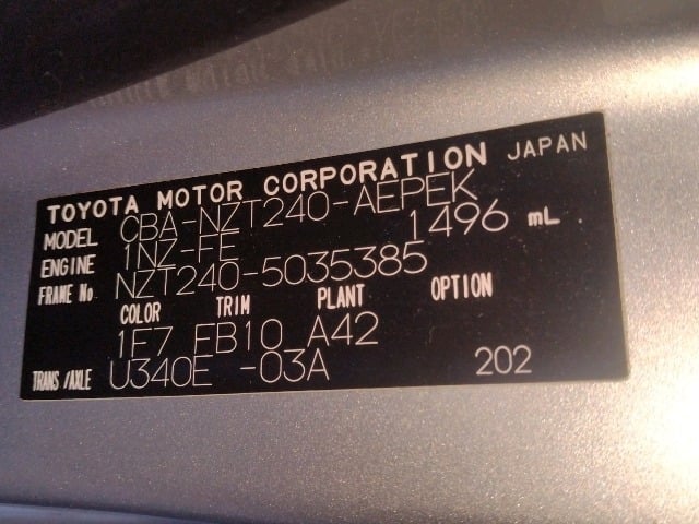 | CHASSIS NO. | NZT240-5035385 |