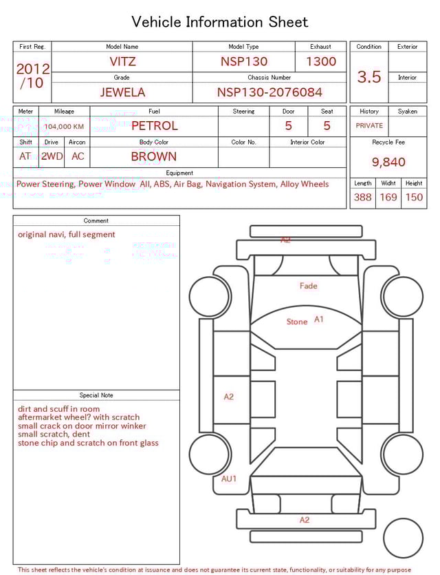 | CHASSIS NO. | NSP130-2076084 |