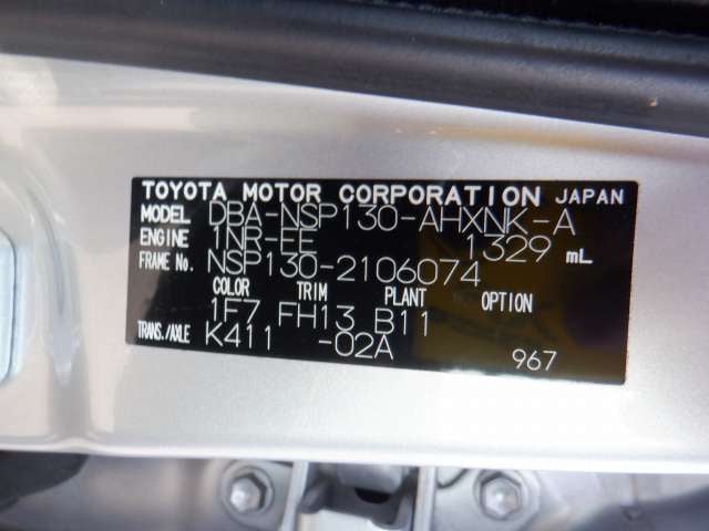 CHASSIS NO. | NSP130-2106074 |