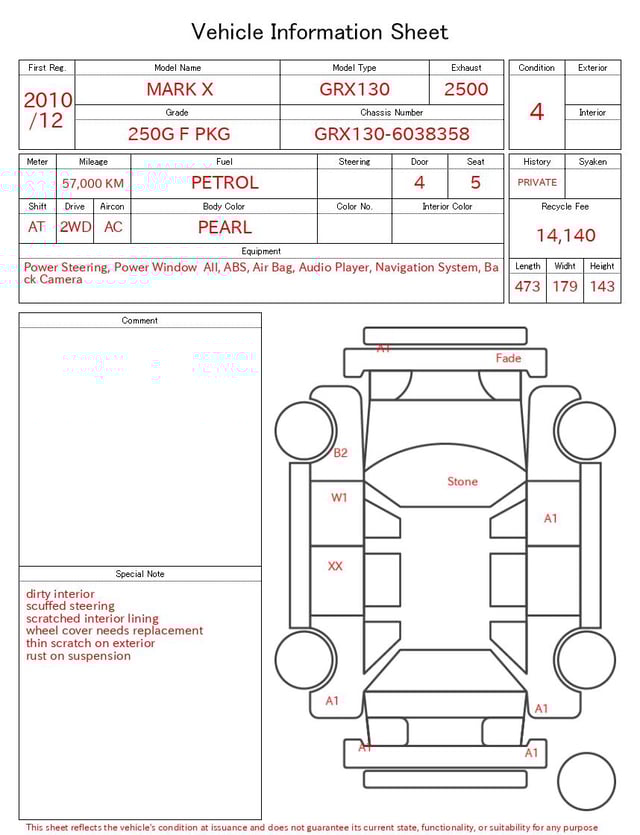 | CHASSIS NO. | GRX130-6038358 |