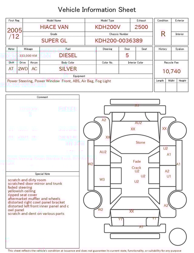 | CHASSIS NO. | KDH200-0036389 |