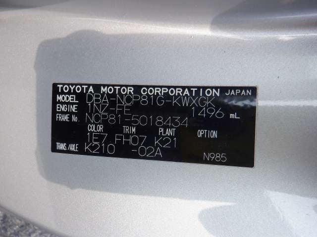 CHASSIS NO. | NCP81-5018434 |
