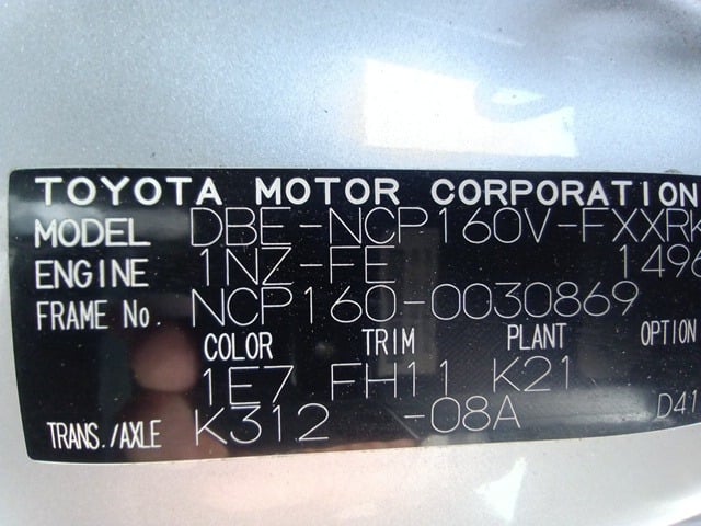 CHASSIS NO. | NCP160-0030869 |