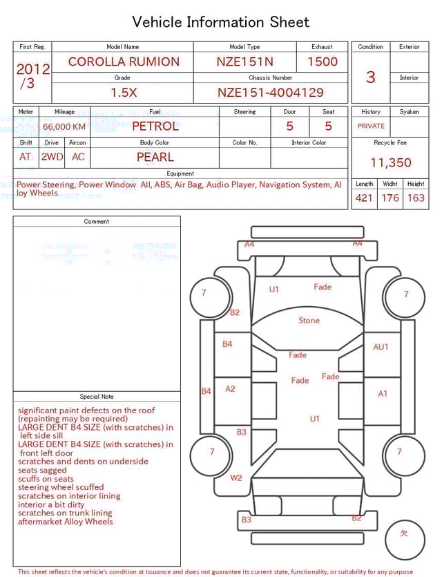 | CHASSIS NO. | NZE151-4004129 |