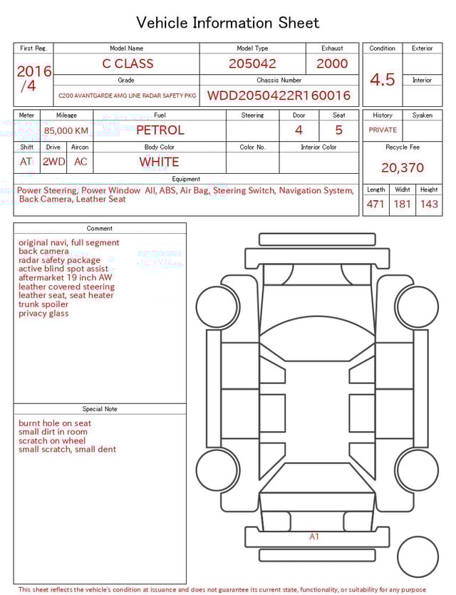 CHASSIS NO. | WDD2050422R160016 |