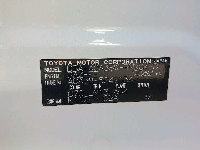 | CHASSIS NO. | ACA38-5247134 |