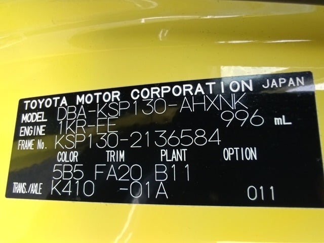 CHASSIS NO. | KSP130-2136584 |