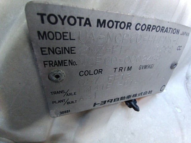CHASSIS NO. | NCP60-0002498 |