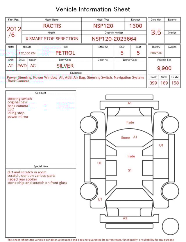 | CHASSIS NO. | NSP120-2023664 |