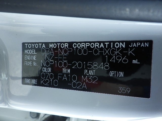 CHASSIS NO. | NCP100-2015848 |