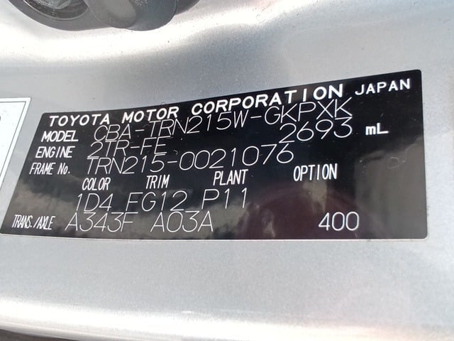 | CHASSIS NO. | TRN215-0021076 |