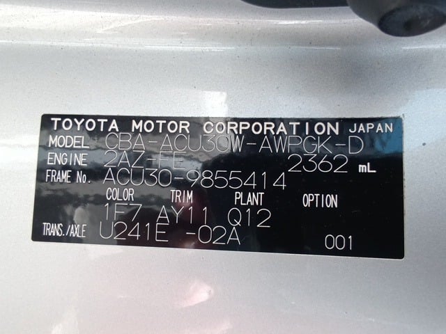 CHASSIS NO. | ACU30-9855414 |
