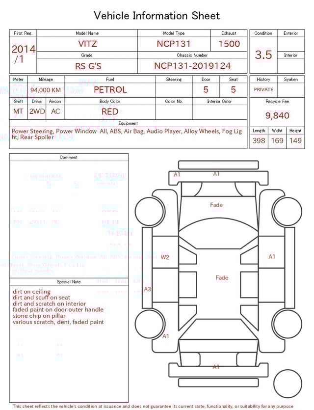 | CHASSIS NO. | NCP131-2019124 |