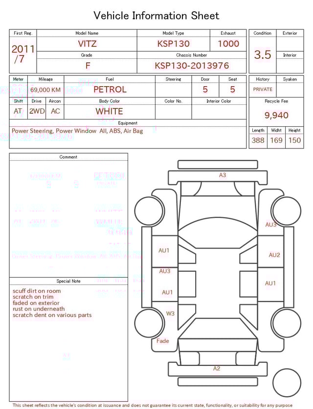 | CHASSIS NO. | KSP130-2013976 |