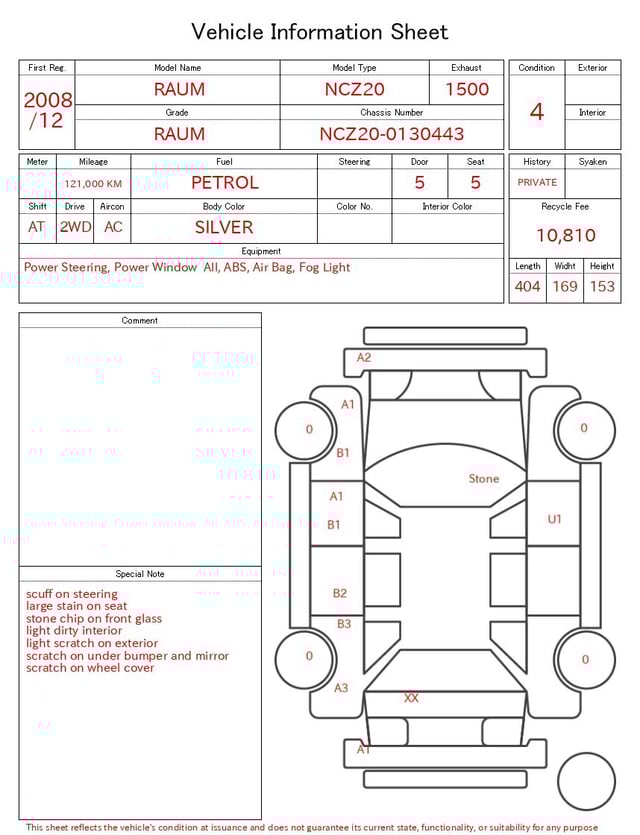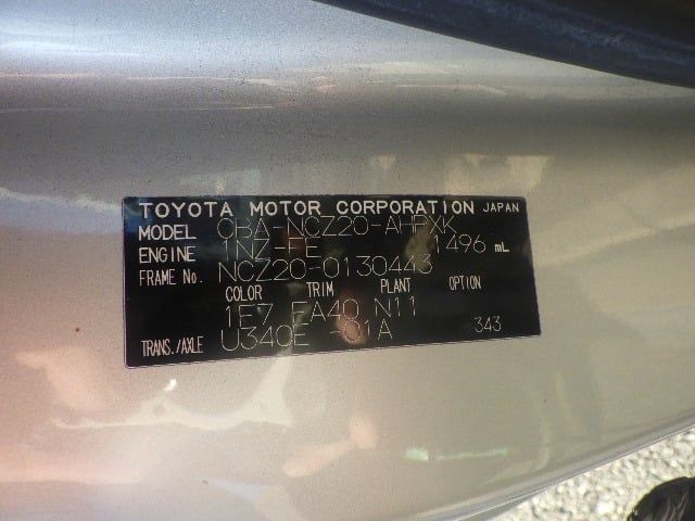 | CHASSIS NO. | NCZ20-0130443 |