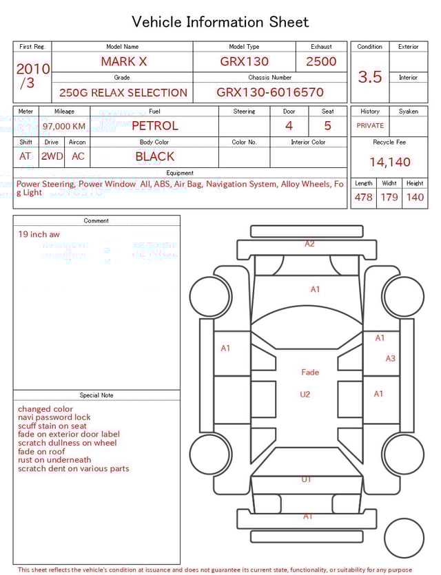 | CHASSIS NO. | GRX130-6016570 |