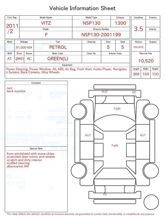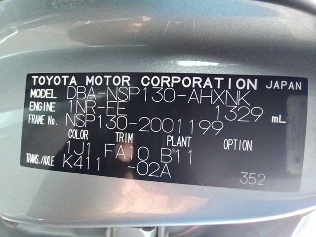 | CHASSIS NO. | NSP130-2001199 |