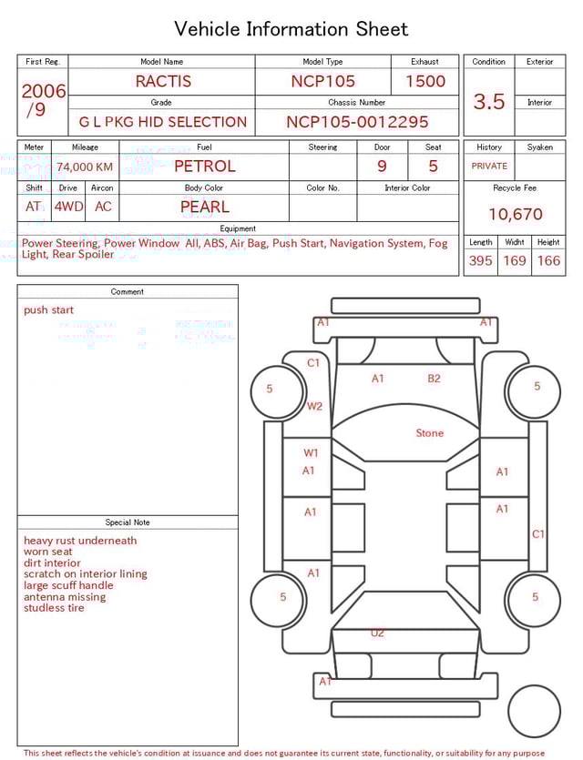 | CHASSIS NO. | NCP105-0012295 |