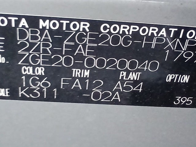 | CHASSIS NO. | ZGE20-0020040 |