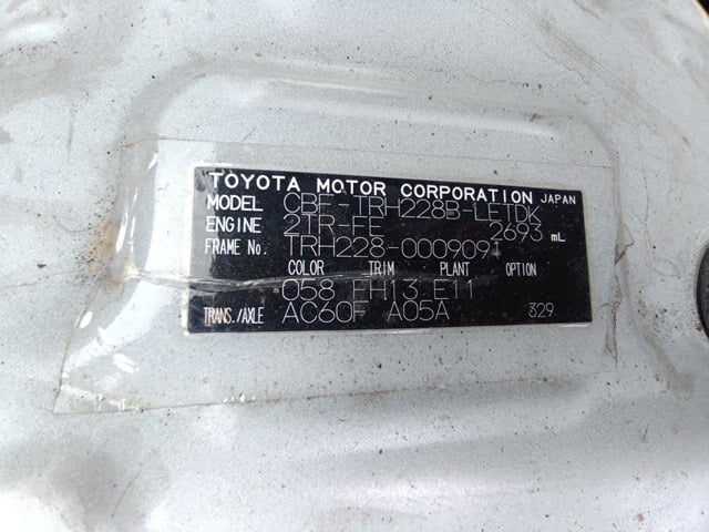 | CHASSIS NO. | TRH228-0009091 |