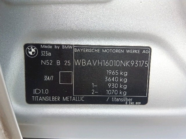 | CHASSIS NO. | WBAVH16010NK93175 |