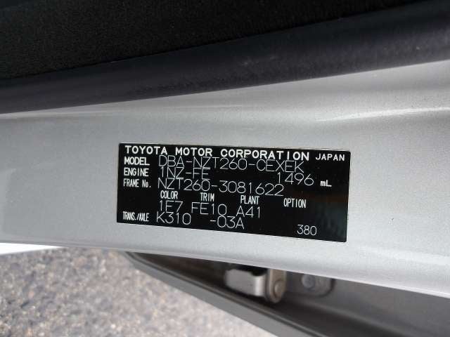 CHASSIS NO. | NZT260-3081622 |