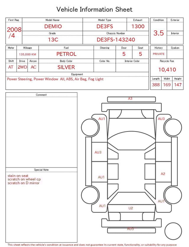 | CHASSIS NO. | DE3FS-143240 |