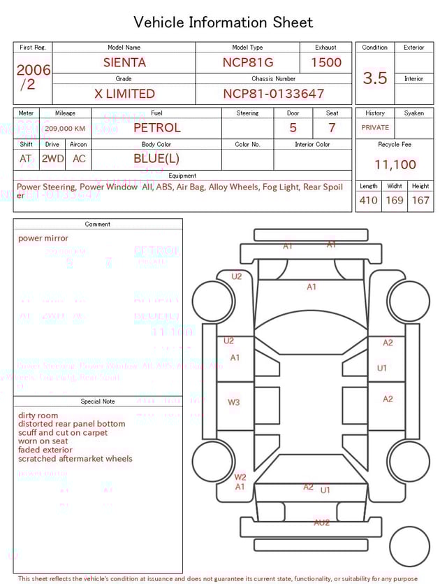 | CHASSIS NO. | NCP81-0133647 |