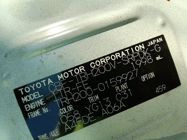 CHASSIS NO. | TRH200-0159927 |