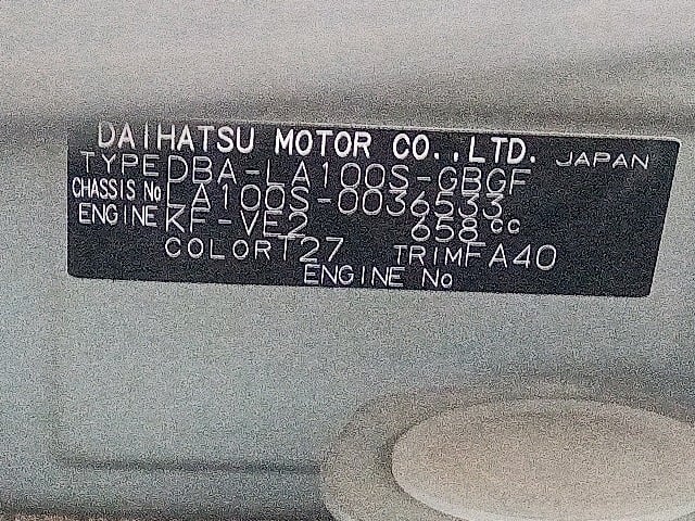 | CHASSIS NO. | LA100S-0036533 |