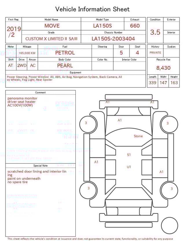 | CHASSIS NO. | LA150S-2003404 |