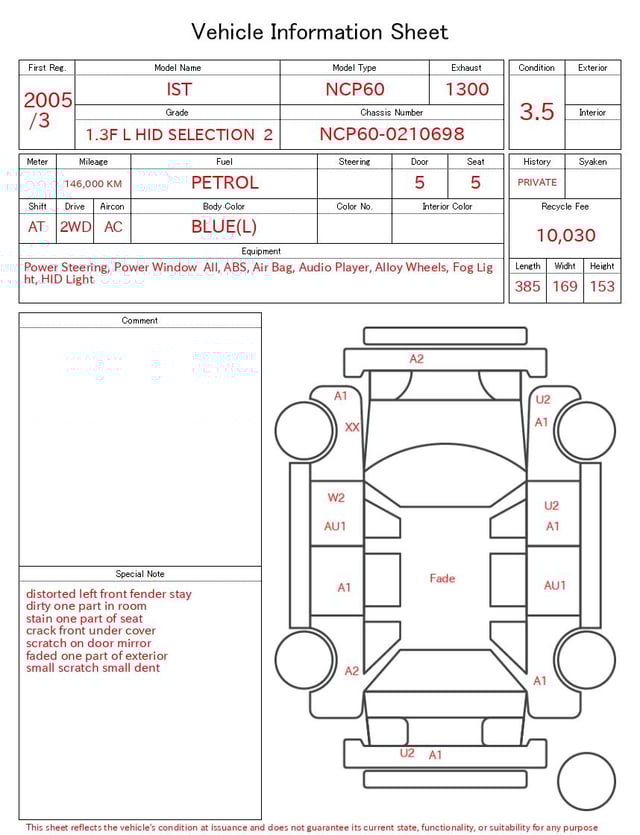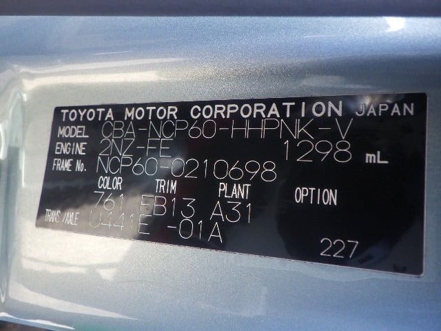 CHASSIS NO. | NCP60-0210698 |