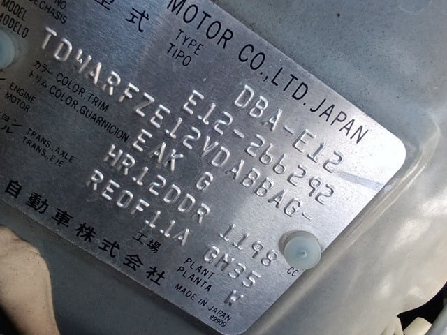 CHASSIS NO. | E12-266292 |