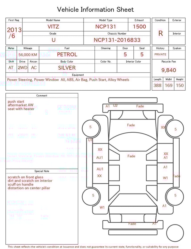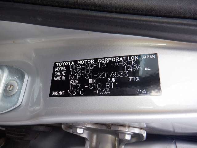 | CHASSIS NO. | NCP131-2016833 |