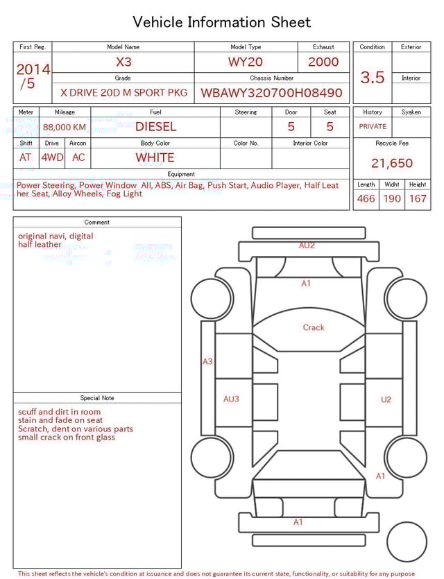 | CHASSIS NO. | WBAWY320700H08490 |