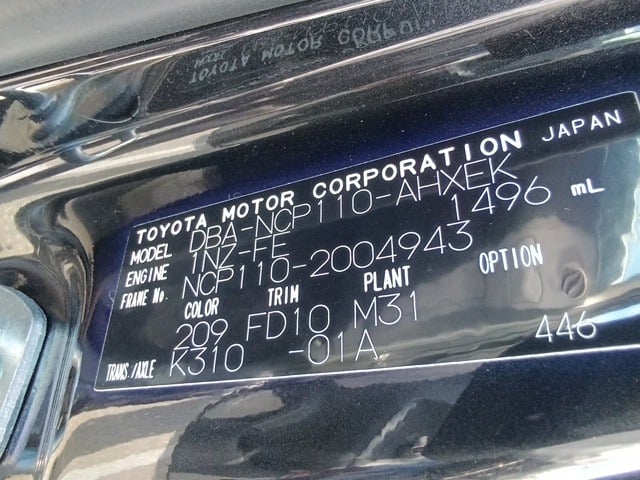 CHASSIS NO. | NCP110-2004943 |