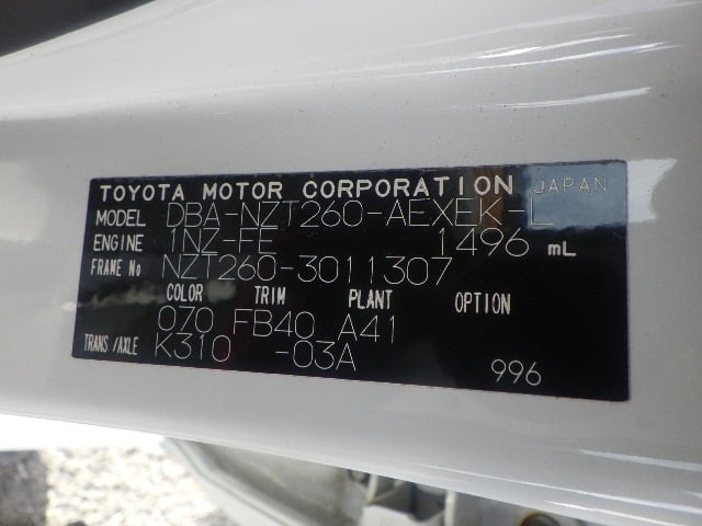 | CHASSIS NO. | NZT260-3011307 |