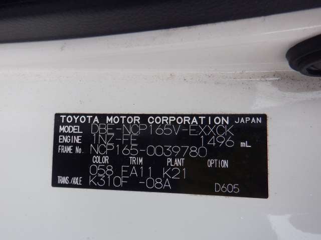 CHASSIS NO. | NCP165-0039780 |