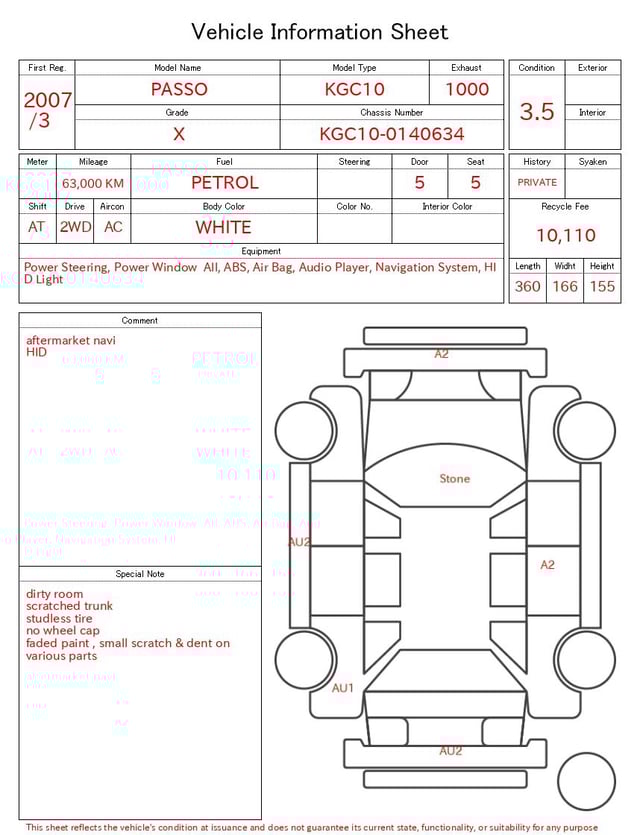 | CHASSIS NO. | KGC10-0140634 |