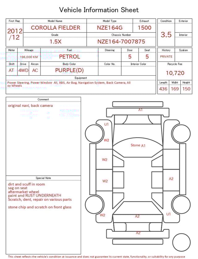 | Model | COROLLA FIELDER |