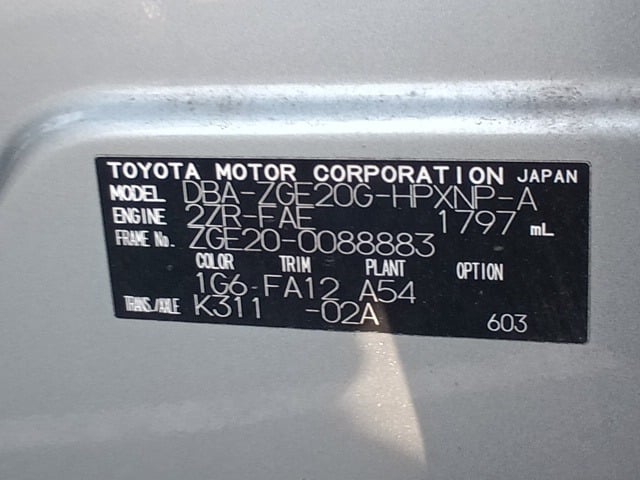 | CHASSIS NO. | ZGE20-0088883 |