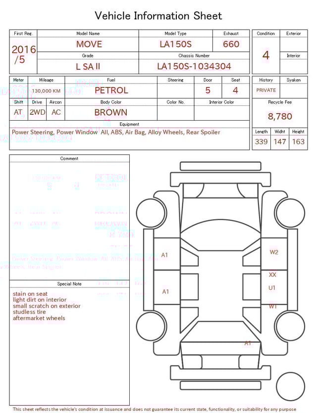 CHASSIS NO. | LA150S-1034304 |