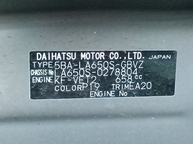 CHASSIS NO. | LA650S-0278804 |