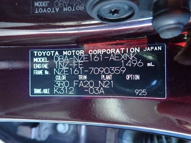 CHASSIS NO. | NZE161-7090359 |